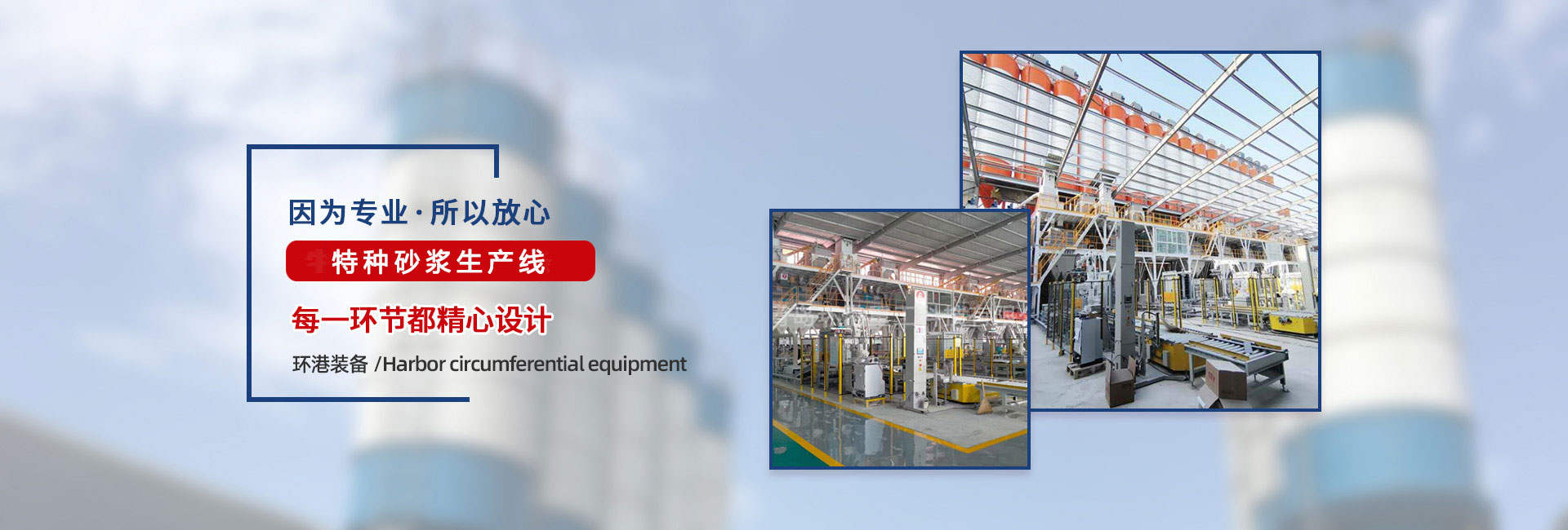 青島環港裝備科技有限公司是一家從事干混(粉)砂漿生產線、特種砂漿生產設備、膩子粉生產線、石膏砂漿設備以及砂漿施工設備、自動化包裝設備,輸送碼垛系統的設計開發、加工制造及銷售服務一體化的公司。
